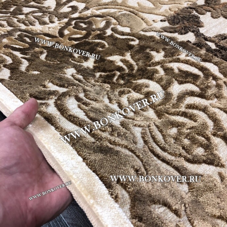 Ковер для Гостиной из Артшелка Дизайн 22 Бежево-Коричневый Овал станет стильным преображением жилого помещения, подчеркивая высокий статус семьи владельца.